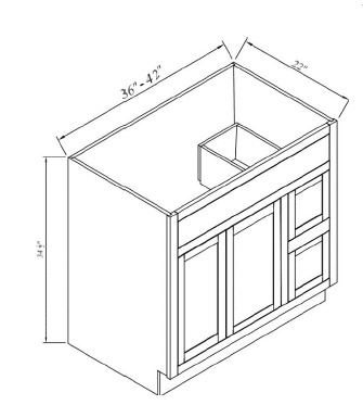 Inset Origami White - Vanity Sink Bases With 2 Drawers on the right door width 14-1/8" Heigth 20-2/8 False drawer width 38-7/8 Height 4-7/8" R bottom drawer width 8-7/8" height 9-2/8"