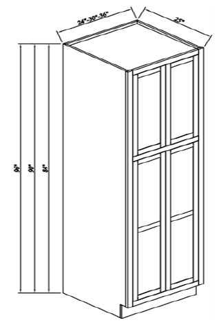 Inset Origami White - Double Doors Wall Pantries 4 Adj. Shelves; 3 at the Bottom, 1 at the Top Door width 16-3/8" Height 38-7/8" Bottom door Width 16-3/8" Height 46-3/8"