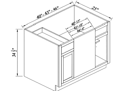 Inset Truffle Brown - Blind Corner Bases 1 Adj. Shelf; half depth door width 11-7/8" Heigth 20-2/8" Drawer Face width 11-7/8" Height 4-7/8"