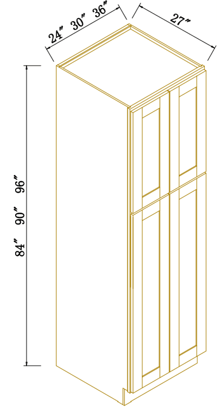 Newtown Charcoal Black - Wall Pantry 24''W X 96''H X 27''D (Two Upper Doors 11-3/4"W X 41-5/8"H, Two Bottom Doors 11-3/4"W X 49-3/8"H)