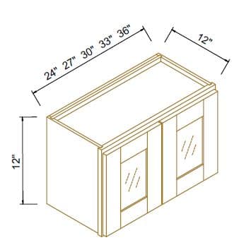Newtown Origami White - Wall Cabinet 33''W X 12''H X 12''D 2Glass Doors (Glass Insert Size: 6 9/16" X 11 3/16")Glass Insert Is Not Incl.