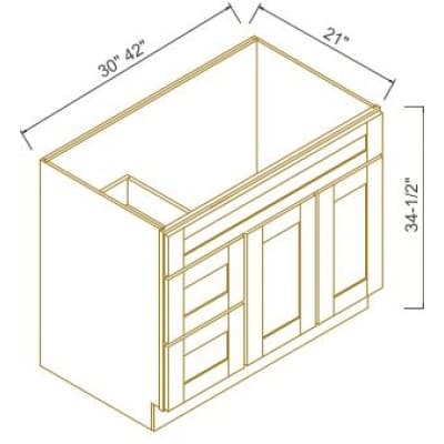 Soft Gray-Natural Interior - Vanity Sink Base With 2 Drawers On The Left 36''W X 21''D X 34-1/2''H 2Doors 2Drawers 1 False Drawer Front