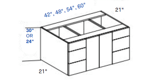 Wilsonart Textured White River Forest-8227-79 - 24" High Double Door Vanity Combo Cabinets 48" Wide X 24"High
